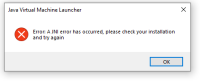 MC-225505 A JNI error has occurred, please check your installation and try again