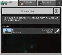 Hi im having an issue with my microsoft account or something else. So im logged in and I click play but I cant play any servers, or realms, or worlds with friends because it says it can't connect to my account. I am logged in when these messages pop up. I am on the update 1.16.100 but before this update everything was working fine. Let me know if this is a known bug to anyone. Thx. These screenshots were taken on Minecraft Bedrock for PC. That is the platform this is occurring for me. ![]()